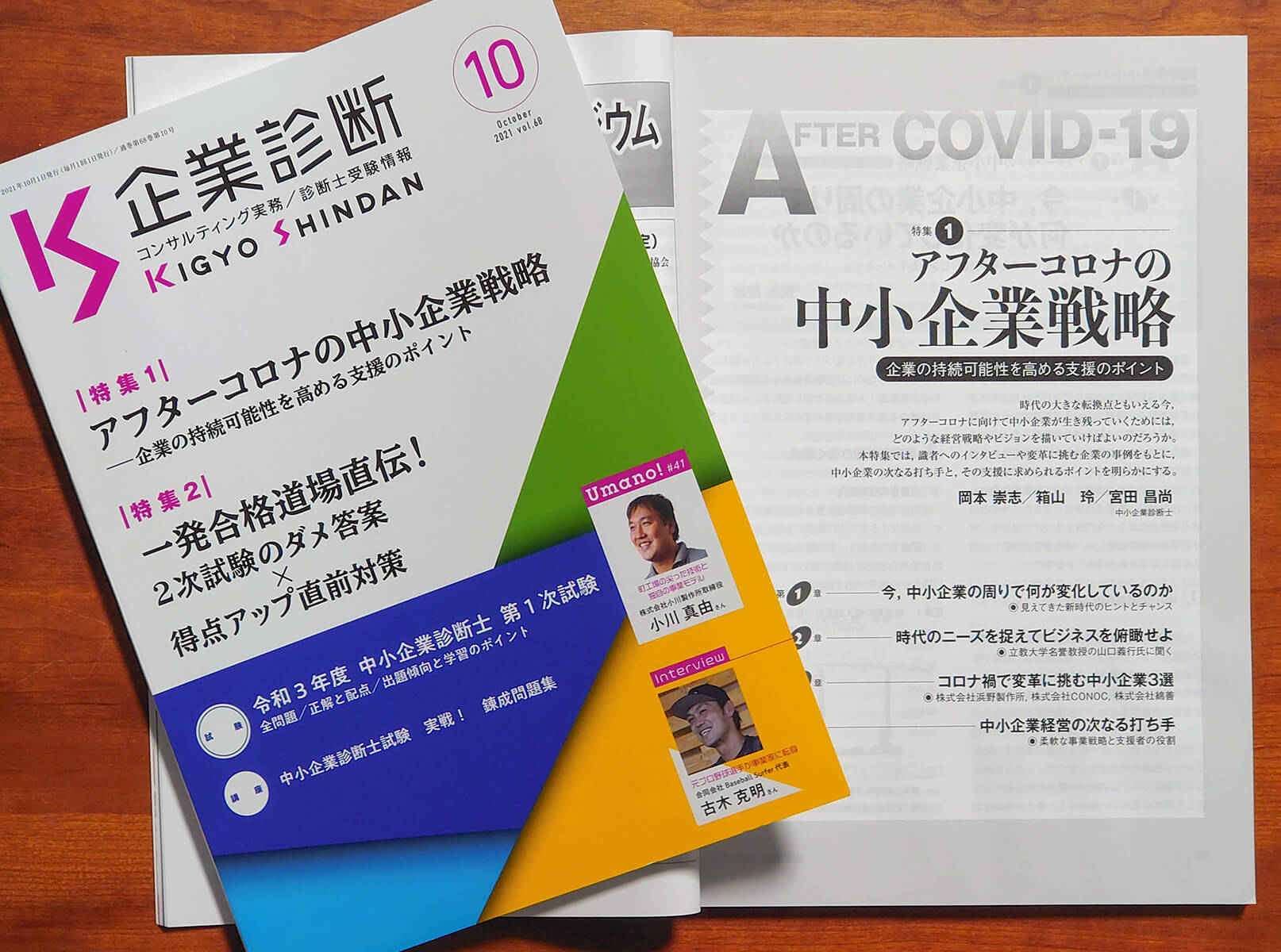 この度「企業診断」10月号、特集「アフターコロナの中小企業戦略——企業の持続可能性を高める支援のポイント」を3人チームの1人として執筆させていただきました。
