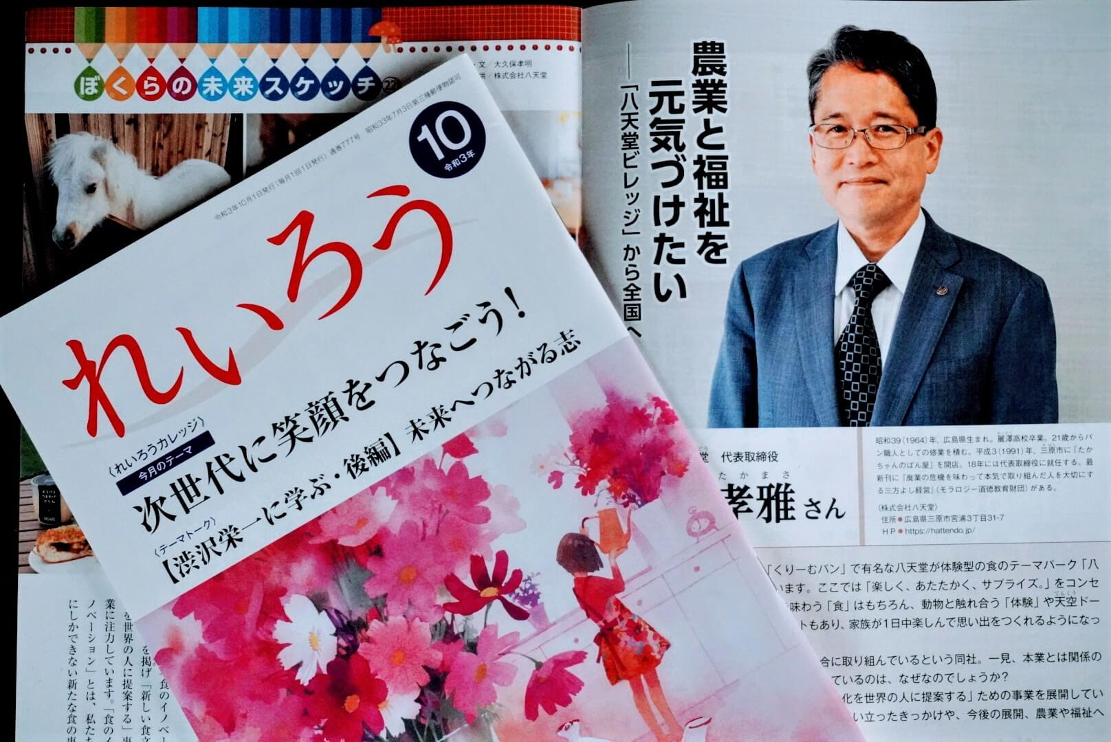 この度、モラロジー研究所発行『れいろう』令和3年10月号の連載企画「ぼくらの未来スケッチ」の執筆を担当させていただきました。