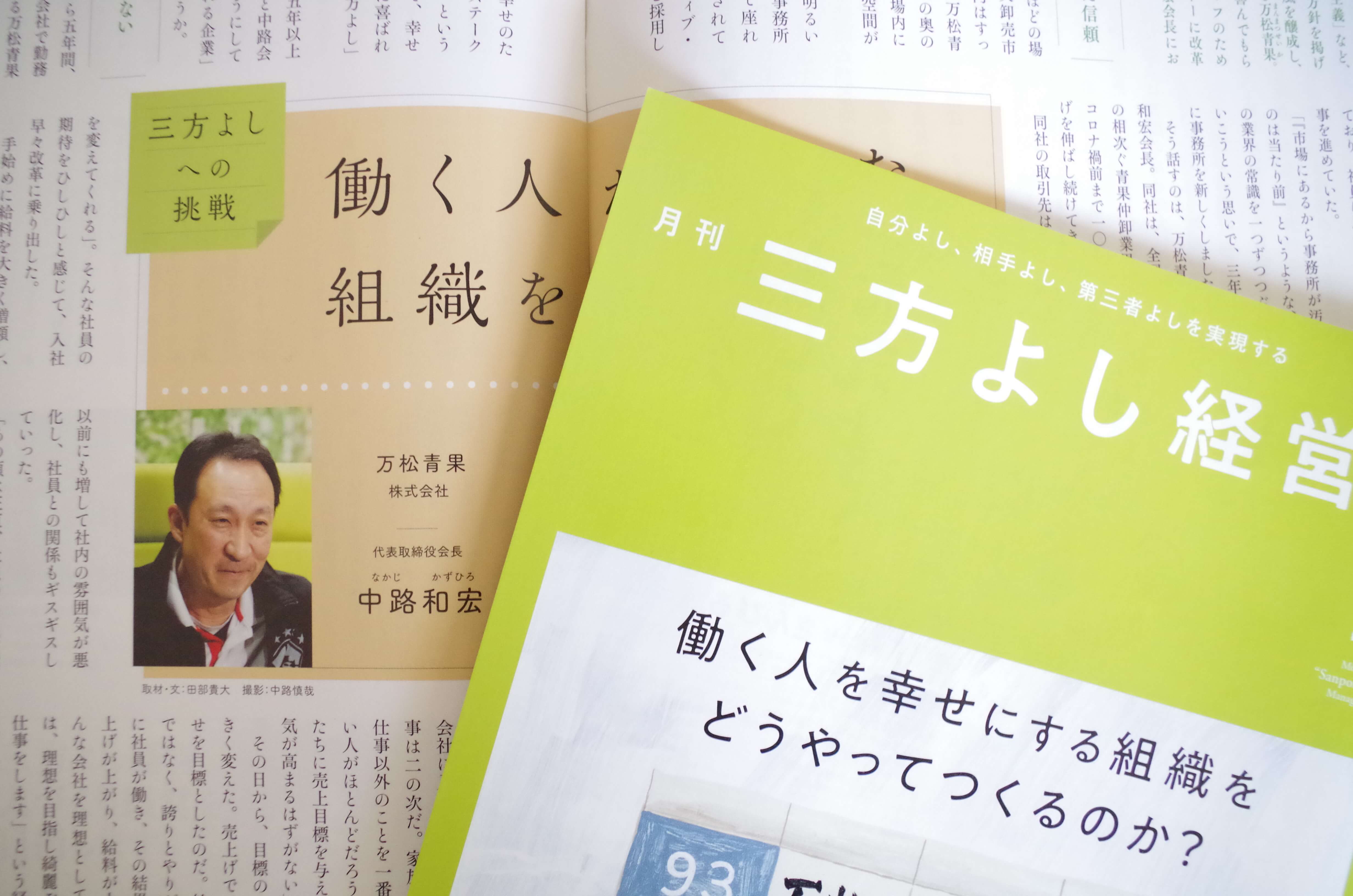 この度,公益財団法人モラロジー道徳教育財団発刊『月刊三方よし経営』令和5年4月号の連載企画「三方よしへの挑戦」の執筆を担当させていただきました。