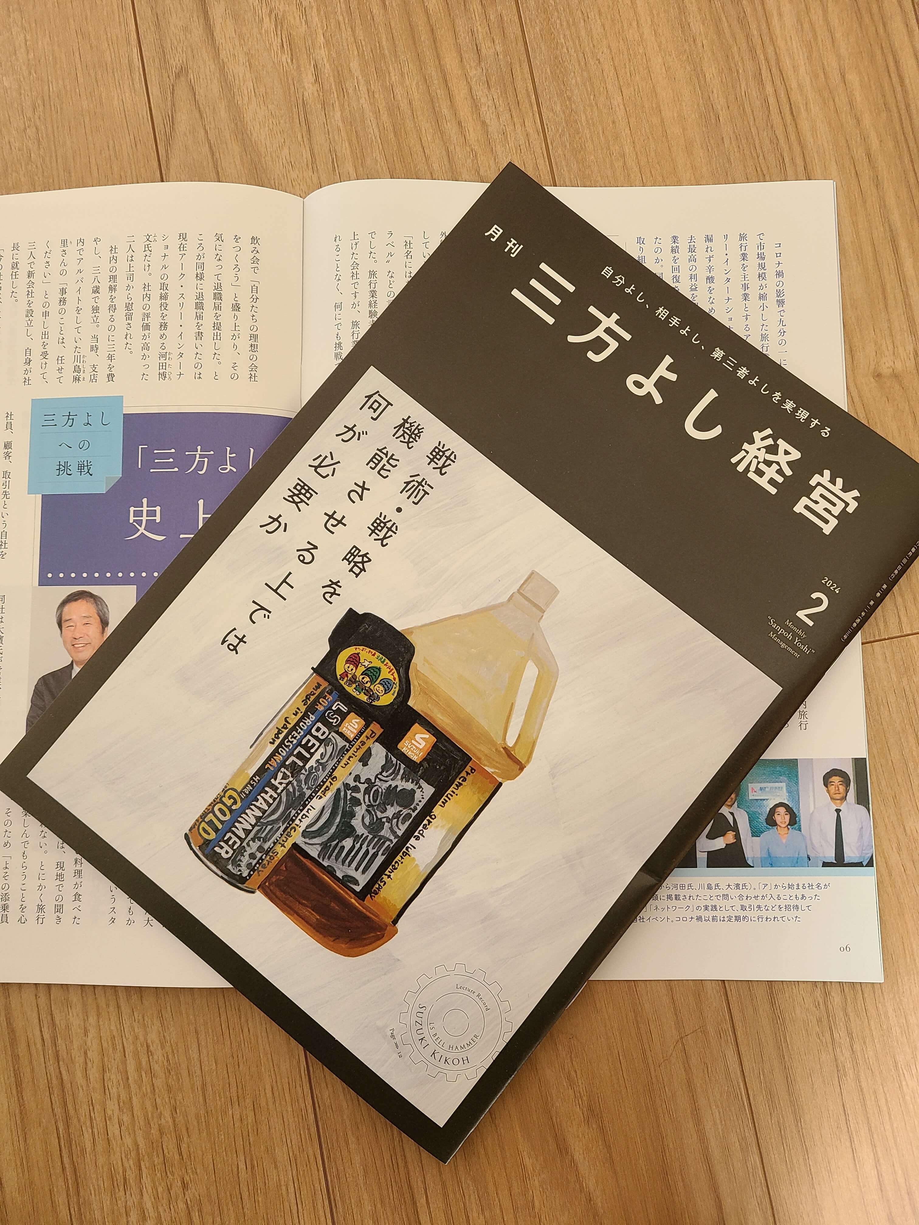 この度、公益財団法人モラロジー道徳教育財団発刊『月刊三方よし経営』令和6年2月号の連載企画「三方よしへの挑戦」の執筆を担当させていただきました。