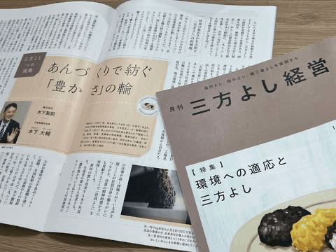 このたび、モラロジー道徳教育財団が発行する『月刊三方よし経営』令和7年8月号の連載企画「三方よしへの挑戦」にて、「あんづくりで紡ぐ『豊かさ』の輪」と題する記事を執筆いたしました。