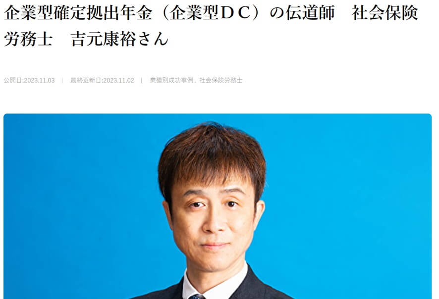吉元さんは、現在東京都江戸川区で社会保険労務士事務所を開業し、企業型確定拠出年金(企業型DC)の普及促進に特化した社会保険労務士としてご活躍されています。志師塾については、独立当初、マーケティングのやり方がわからず、模索していたところ、志師塾に出会い、自分の棚卸を通じて、「自分は何がしたいのか」「どのように伝えていけばいいのか」を見つめ直すきっかけを与えたくれた、と語っておられました。企業型DCについては、中小企業に対して認知度が低く、また間違った解釈をされている企業も多いことで普及促進がなかなか進まない事が悩みのタネだと仰いながらも根気よく普及活動を行っておられます。私自身もインタビューを通じて、企業型DCの事を教えていただき、大変勉強になりました。「企業型DCとは何か」もインタビューの中に触れていますので、ぜひご一読ください。