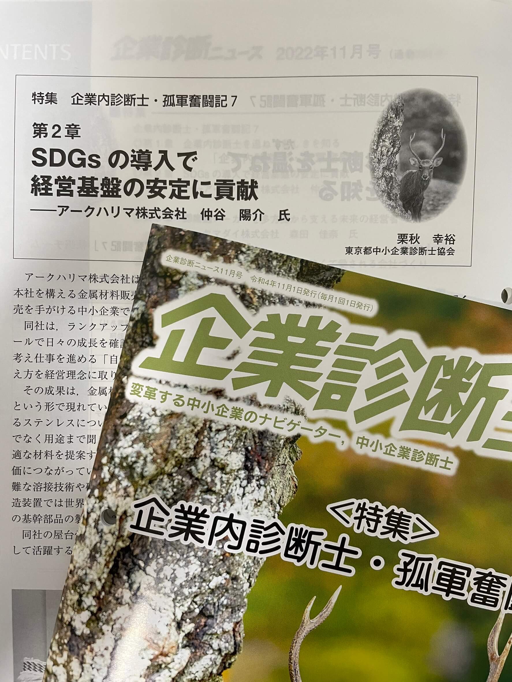 この度、一般社団法人中小企業診断協会の機関誌、企業診断ニュース11月号「特集 企業内診断士・孤軍奮闘記7」で仲谷陽介さん(アークハリマ株式会社)の取材記事を執筆させていただきました。