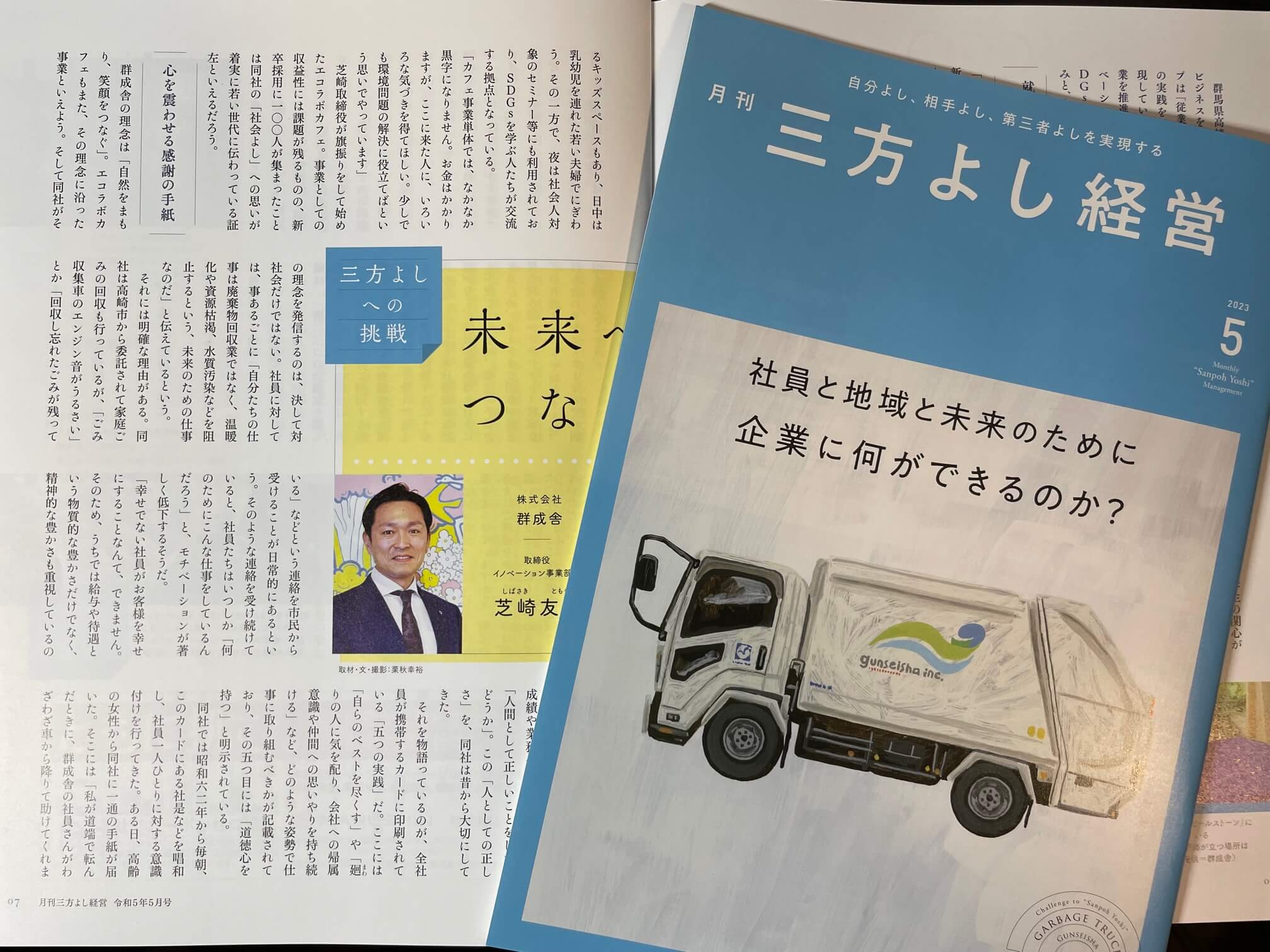 この度,公益財団法人モラロジー道徳教育財団発刊『月刊三方よし経営』令和5年5月号の連載企画「三方よしへの挑戦」の執筆を担当させていただきました。