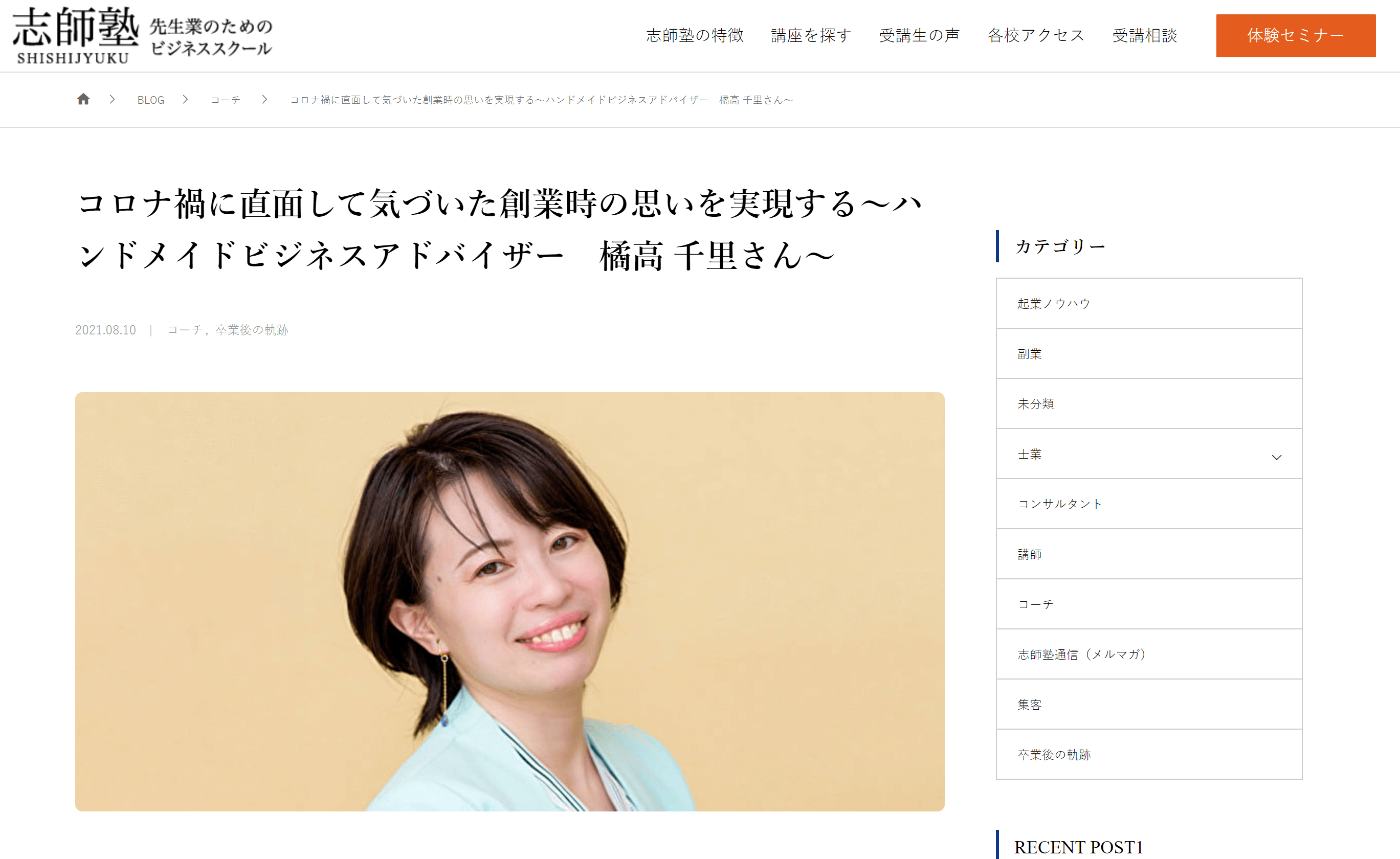 「コロナ禍に直面して気づいた創業時の思いを実現する~ハンドメイドビジネスアドバイザー 橘高 千里さん~」https://44jyuku.com/kittakachisato/