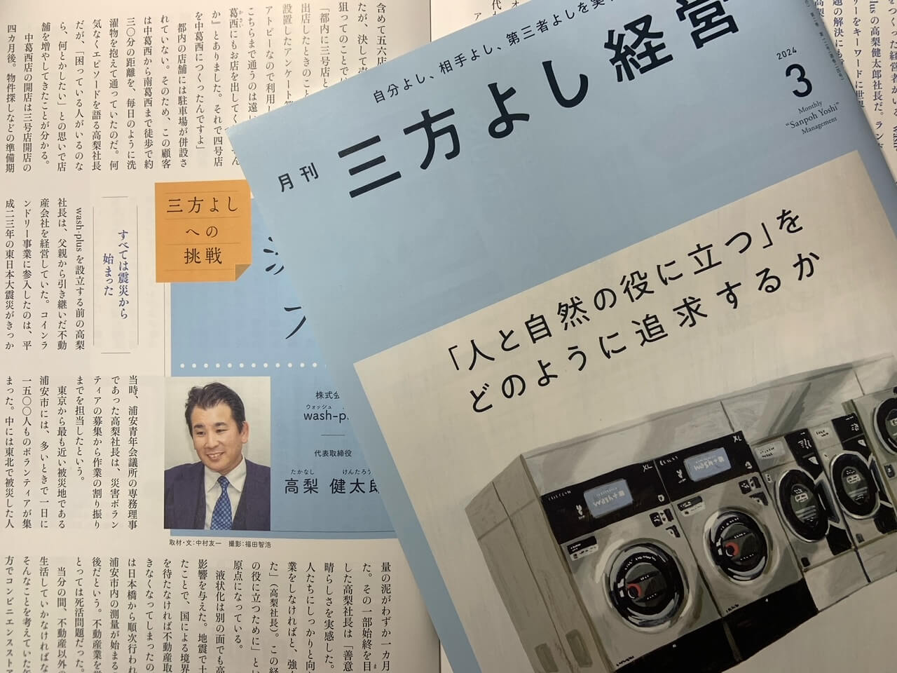 本記事では、洗剤を使わないコインランドリーをつくった、千葉県浦安市の「株式会社wash-plus」の代表高梨健太郎様にお話を伺いました。東日本大震災をきっかけとしたランドリーへの参入とランドリーをキーワードに世界の環境問題の解決にも貢献したいと考え行動されている、その取り組みと想いを語っていただきました。