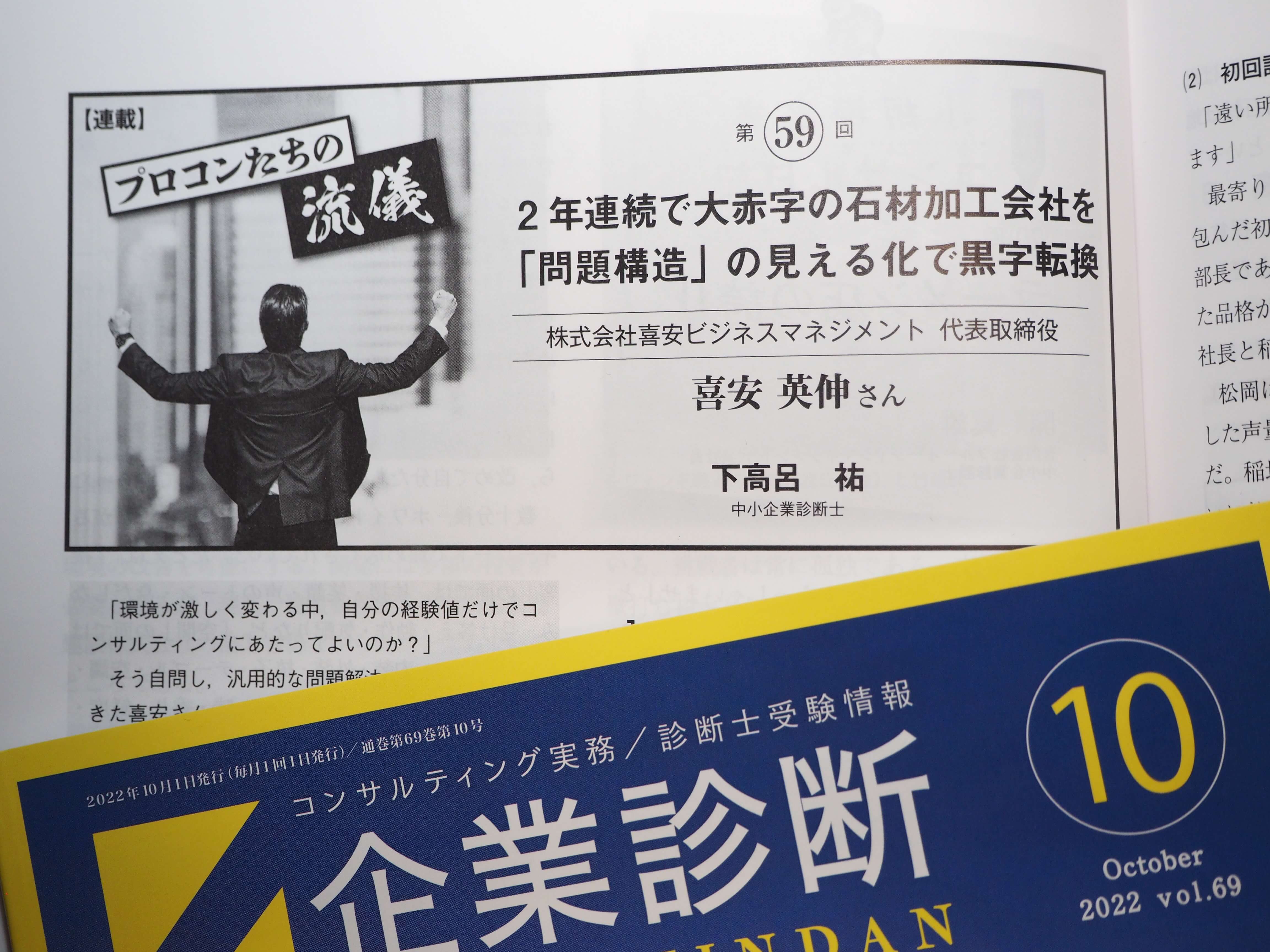 この度、月刊『企業診断』2022年10月号にて、「プロコンたちの流儀」を執筆しました。