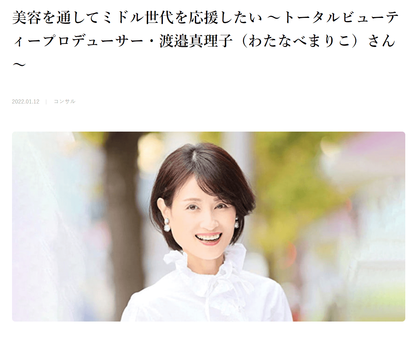 渡邉さんは、「美容を通してミドル世代を応援したい」という想いを胸に、独自の美容メソッド「ズルメイク」を用いてお客様一人ひとりに「美」を届けるトータルビューティプロデューサーとして活躍されています。